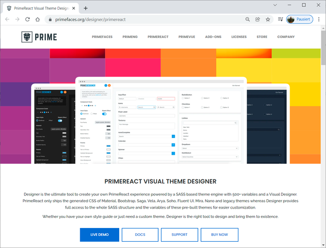 Zum anderen kann der kostenpflichtige Primereact-Visual-Theme-Designer verwendet werden: