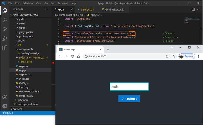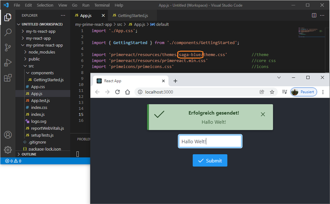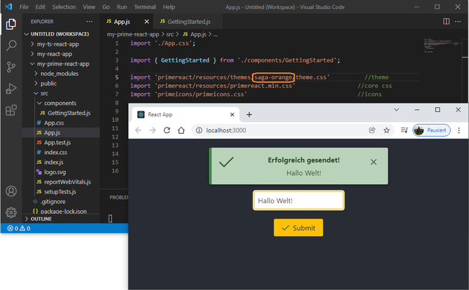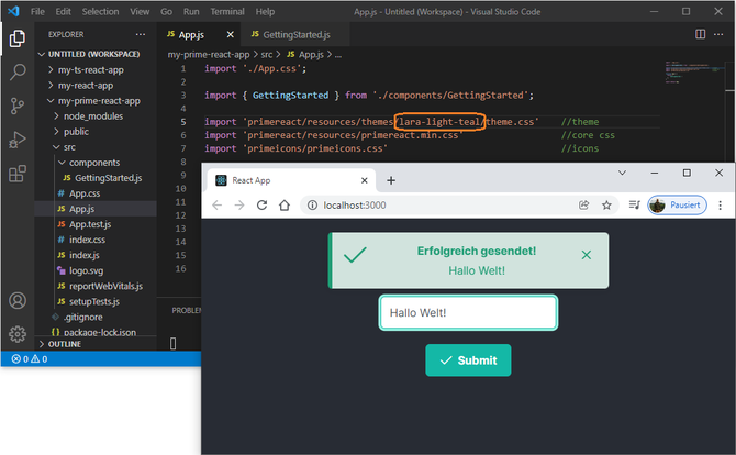 Mit Hilfe der import-Anweisung „import ‚primereact/resources/themes/[thema]/theme.css‘“ kann eines der mitgelieferten Themen ausgewählt werden: